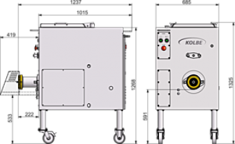 Ce hachoir-mélangeur est le modèle d'entrée de gamme permettant un raccordement au portionneur KOLBE PM150. Ce hachoir est entièrement en acier inoxydable, facile d'opération et d’entretien. Son système électrique est complètement étanche à l'eau et la pénétration de viande. Cette machine est doté d'un entrainement Dynamic développant une bonne puissance de base, mais aussi un entonnoir de 80 litres (environ 60 kg). Celle-ci convient parfaitement pour le portionnement et traiter les pièces de viandes hachés jusqu'à maximum -1°C. L'entonnoir frigorifique disponible en option la rend également idéale pour la fabrication de kebabs.